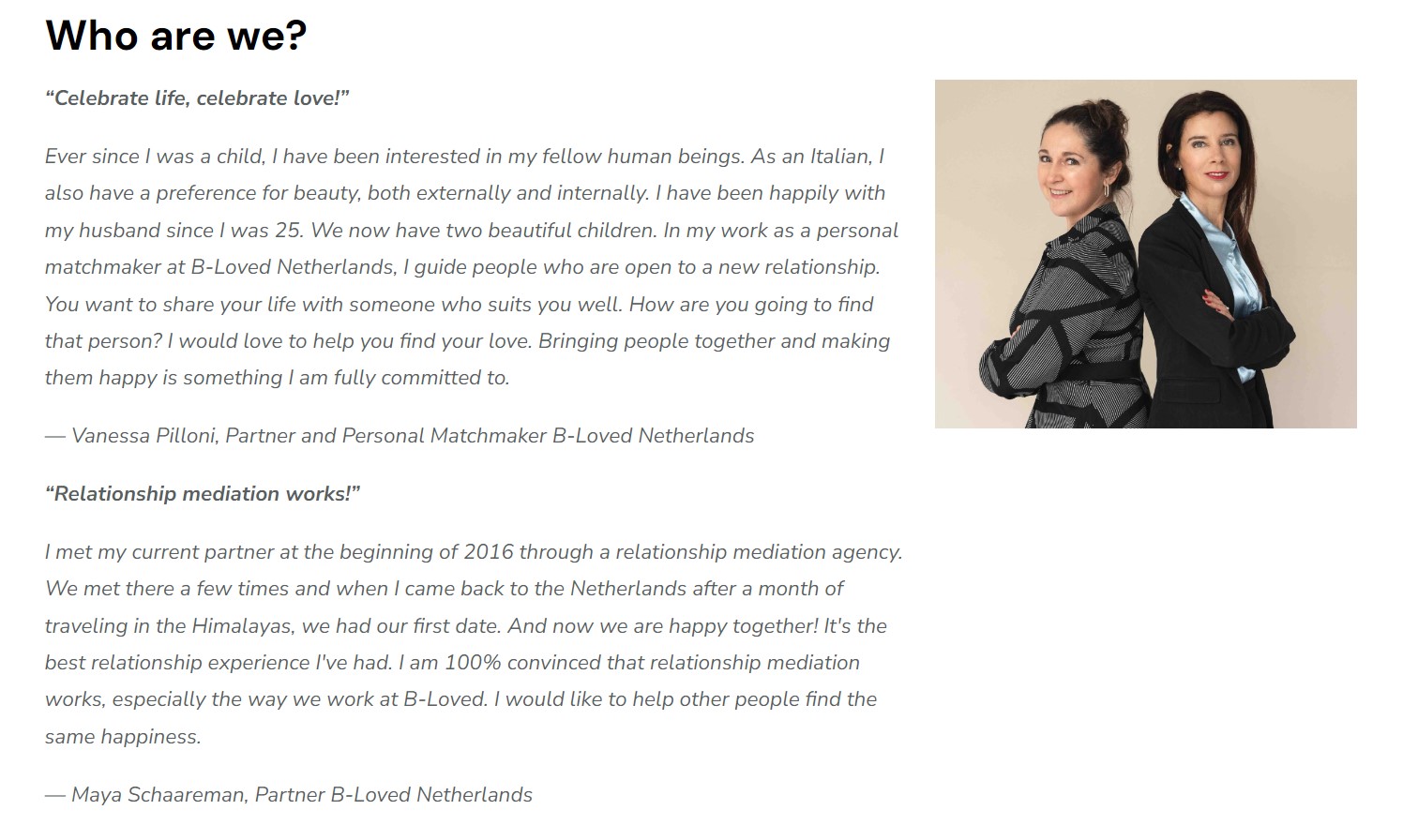 Beloved's story is one of innovation, dedication, and the power of human connection. They've taken matchmaking into the modern age while holding onto the personal touch that makes their service special. This blend of the old and the new has positioned them as a leading matchmaking service in the Netherlands and Belgium.